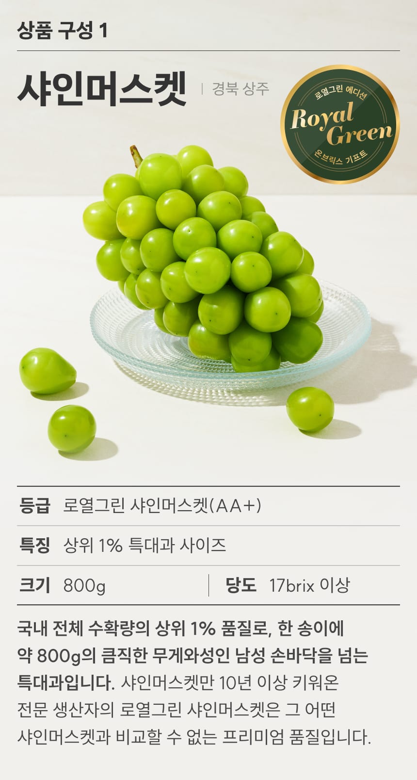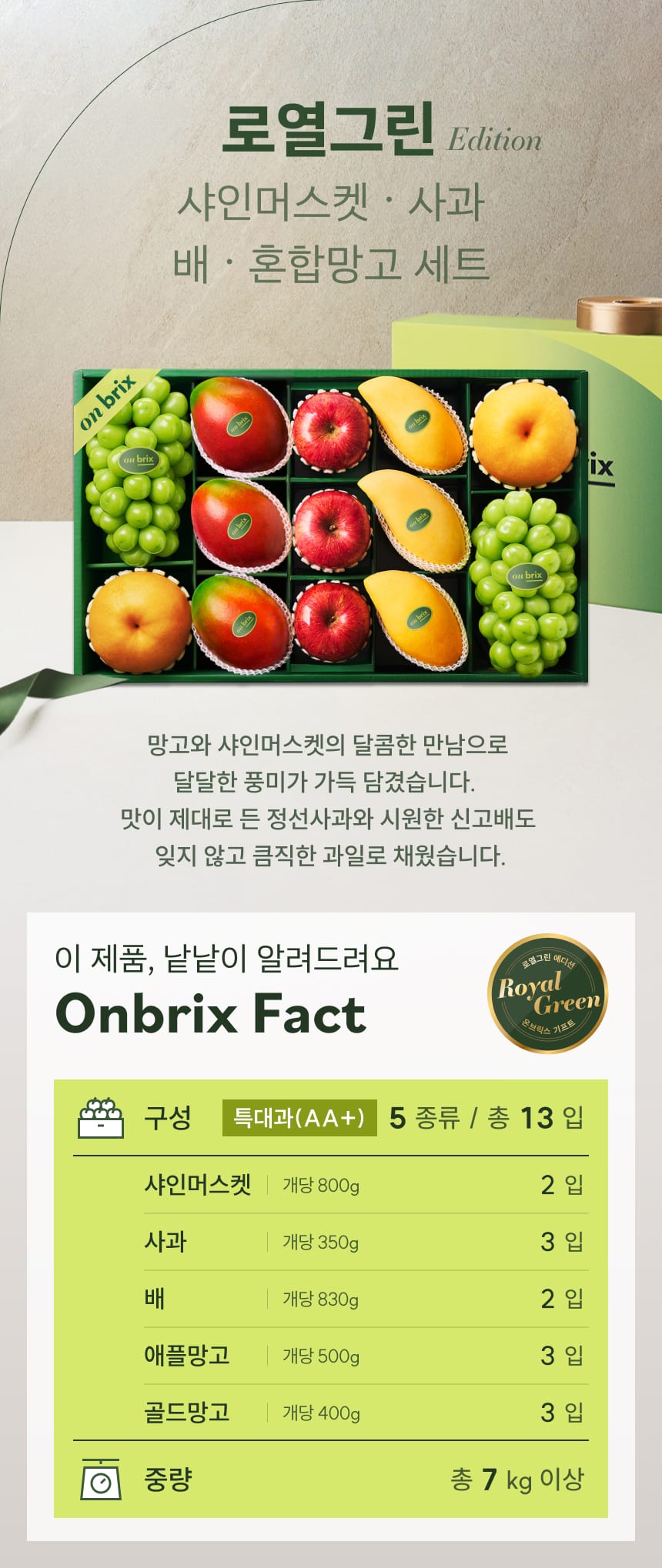 [새벽에On] [16일 새벽도착] 로열그린 에디션, 샤인머스켓&사과&배&혼합망고 선물세트 7kg이상(13입/특대형)