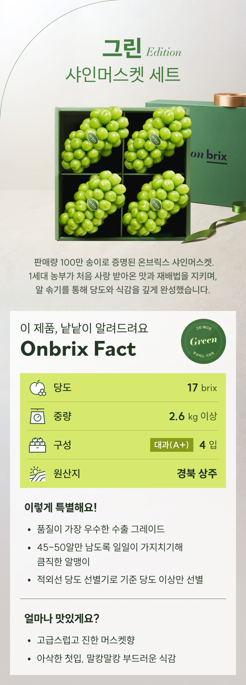 029 [설 선물] 그린 에디션, 프리미엄 고당도 샤인머스켓 선물세트 2.6kg이상(4송이/특품)