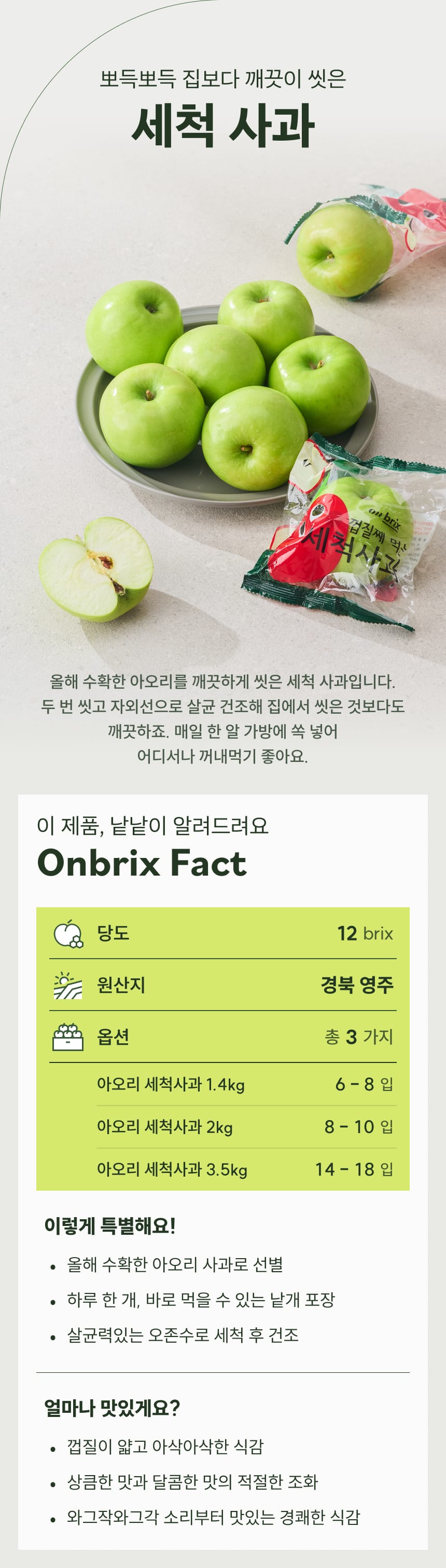 [새벽에On] 껍질째 바로먹는 아오리 세척 사과 1.4kg / 2kg / 3.5kg