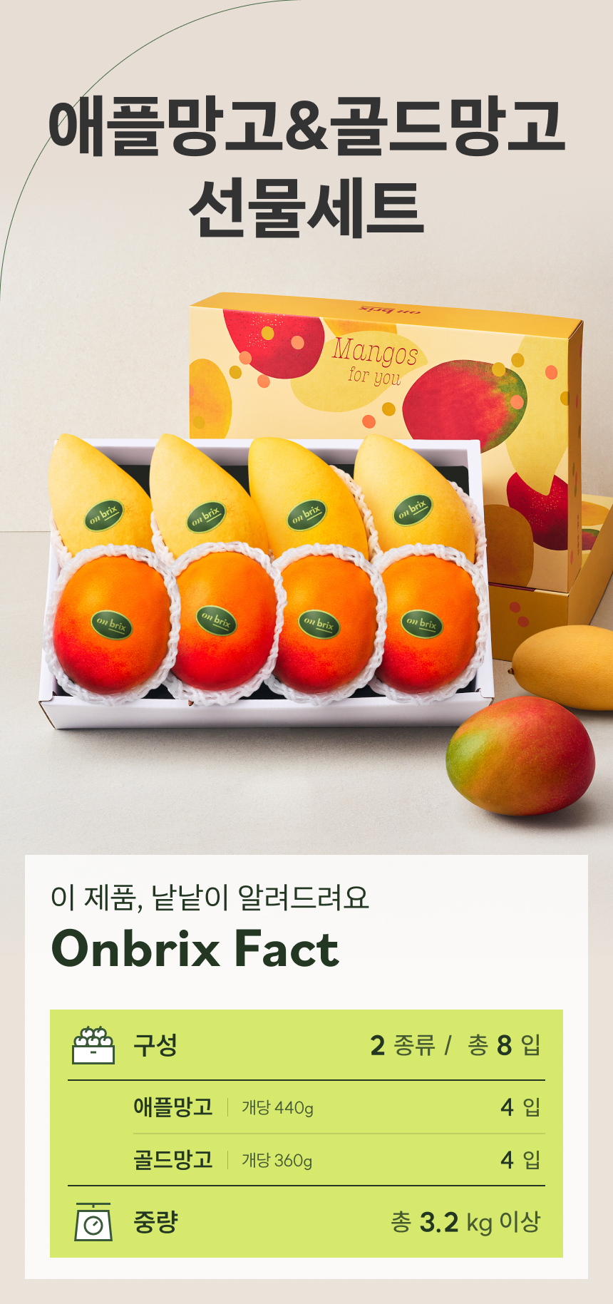 항공직송 고당도 애플망고&태국망고 선물세트 3.2kg이상(8입/특품)