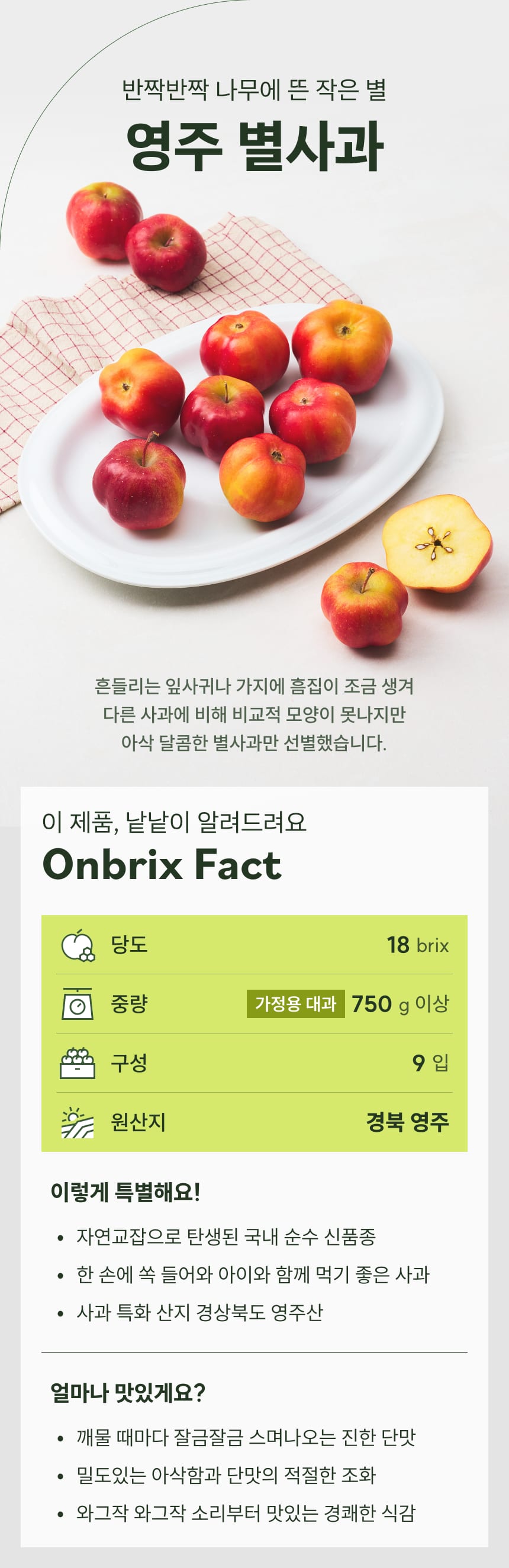 [산지직송] 한 손에 쏙, 가정용 영주 별사과 750g이상 (9입/대과)