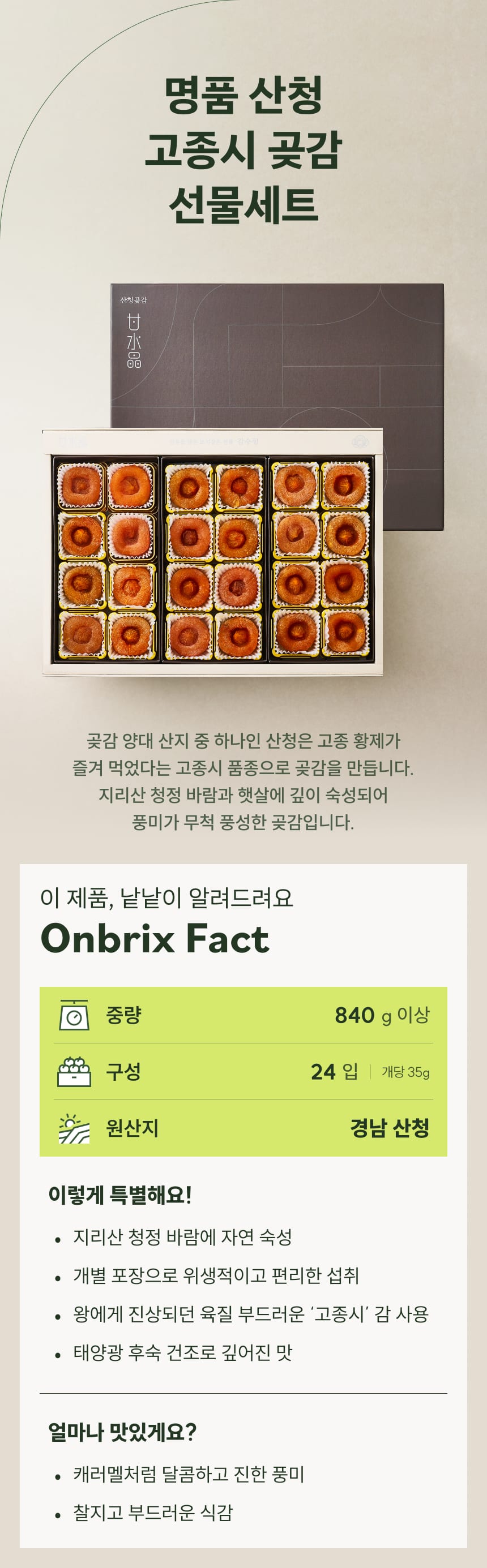 황제의 간식, 산청 고종시 곶감 선물세트 24입(개당 35g이상/개별포장)