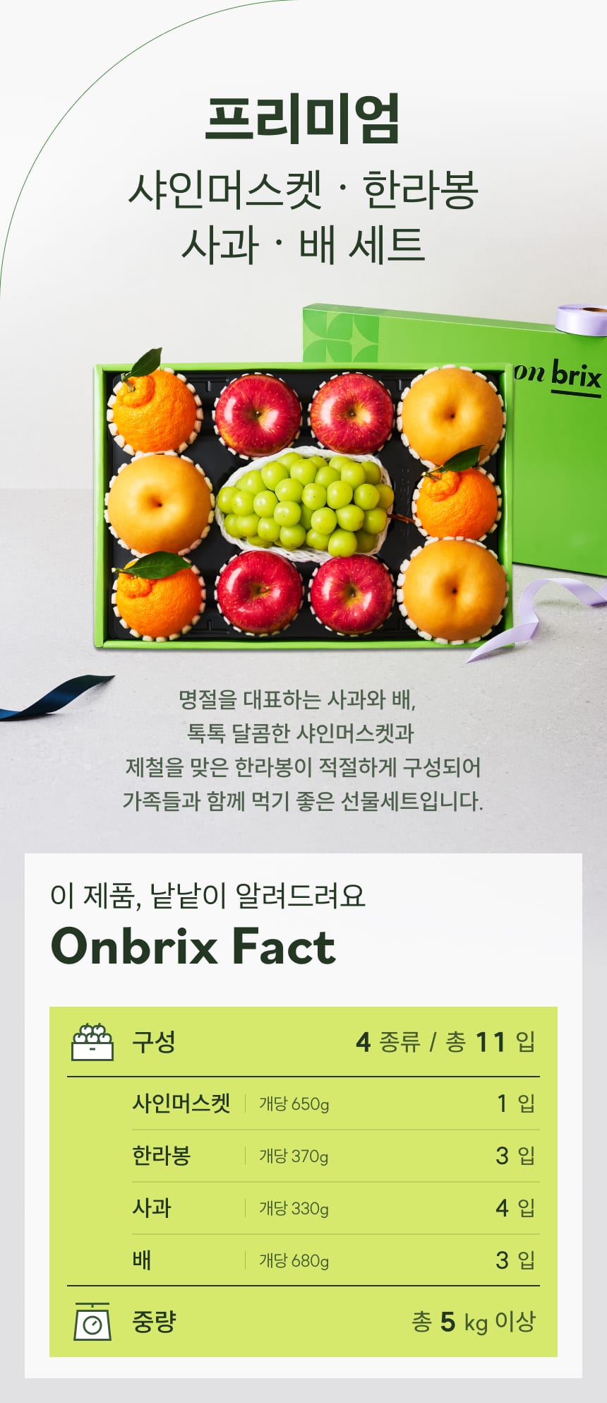 • 164 [설 선물] 산지직송 샤인머스켓&사과&배&한라봉 선물세트 5kg(11입)