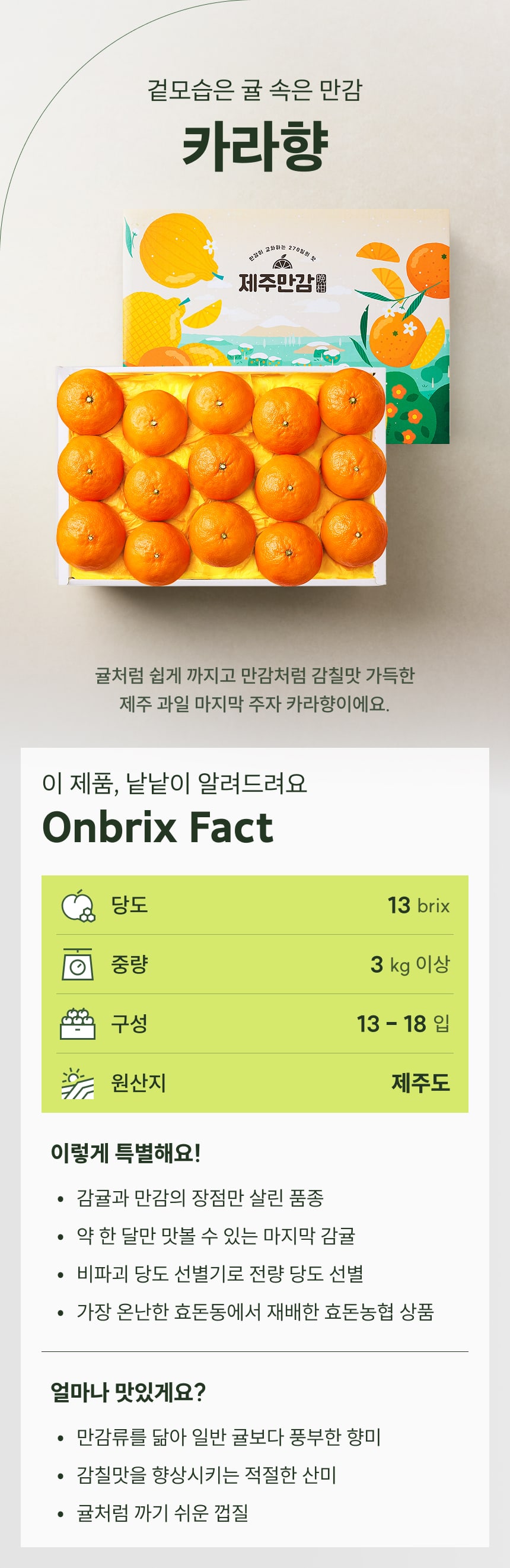 제주만감 에디션, 효돈농협 고당도 카라향 선물세트 3kg (13-18입)