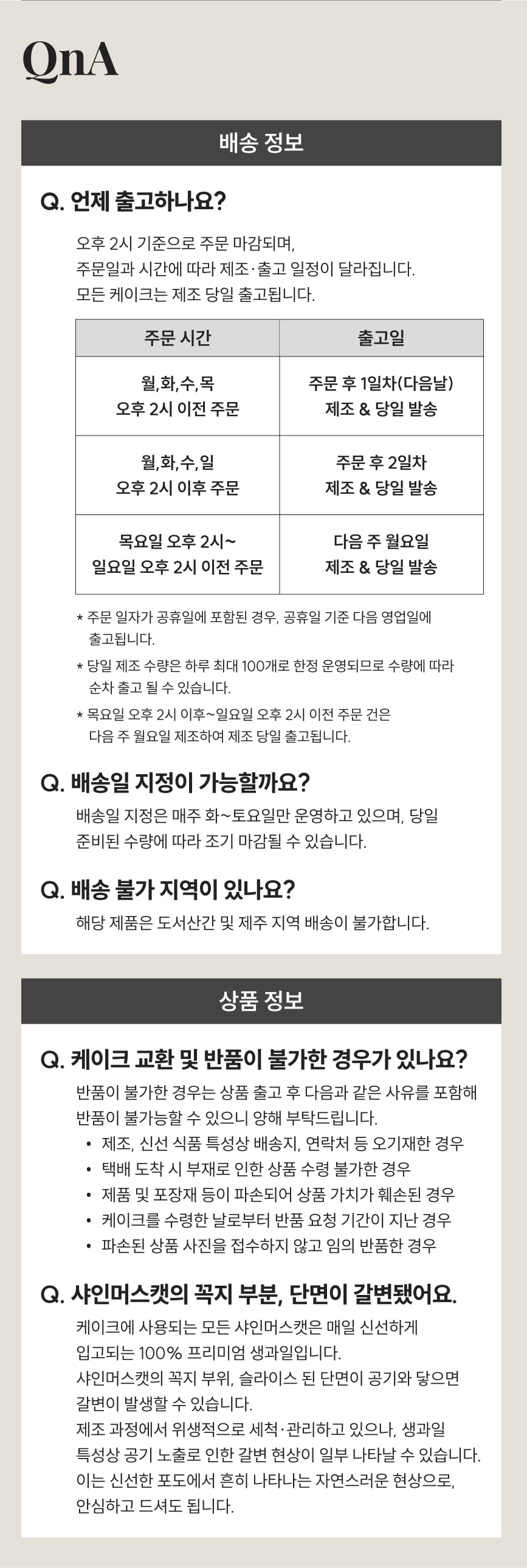 품질 기준 미달 시 배송이 지연될 수 있습니다. 해당 사항은 사전에 개별 안내 드립니다.