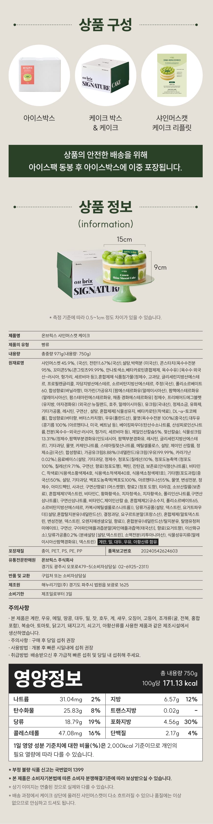 상품명 | 온브릭스 샤인머스캣 케이크 |