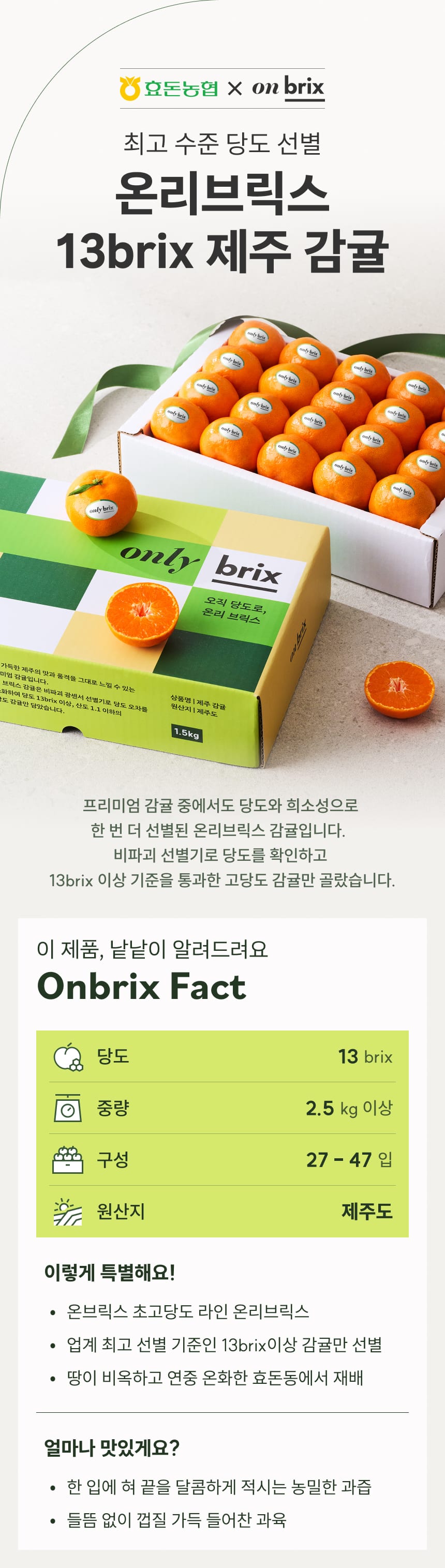 049 [설 선물] 온리브릭스 효돈농협 초고당도 노지 감귤 선물세트 2.5kg(13brix/특품)