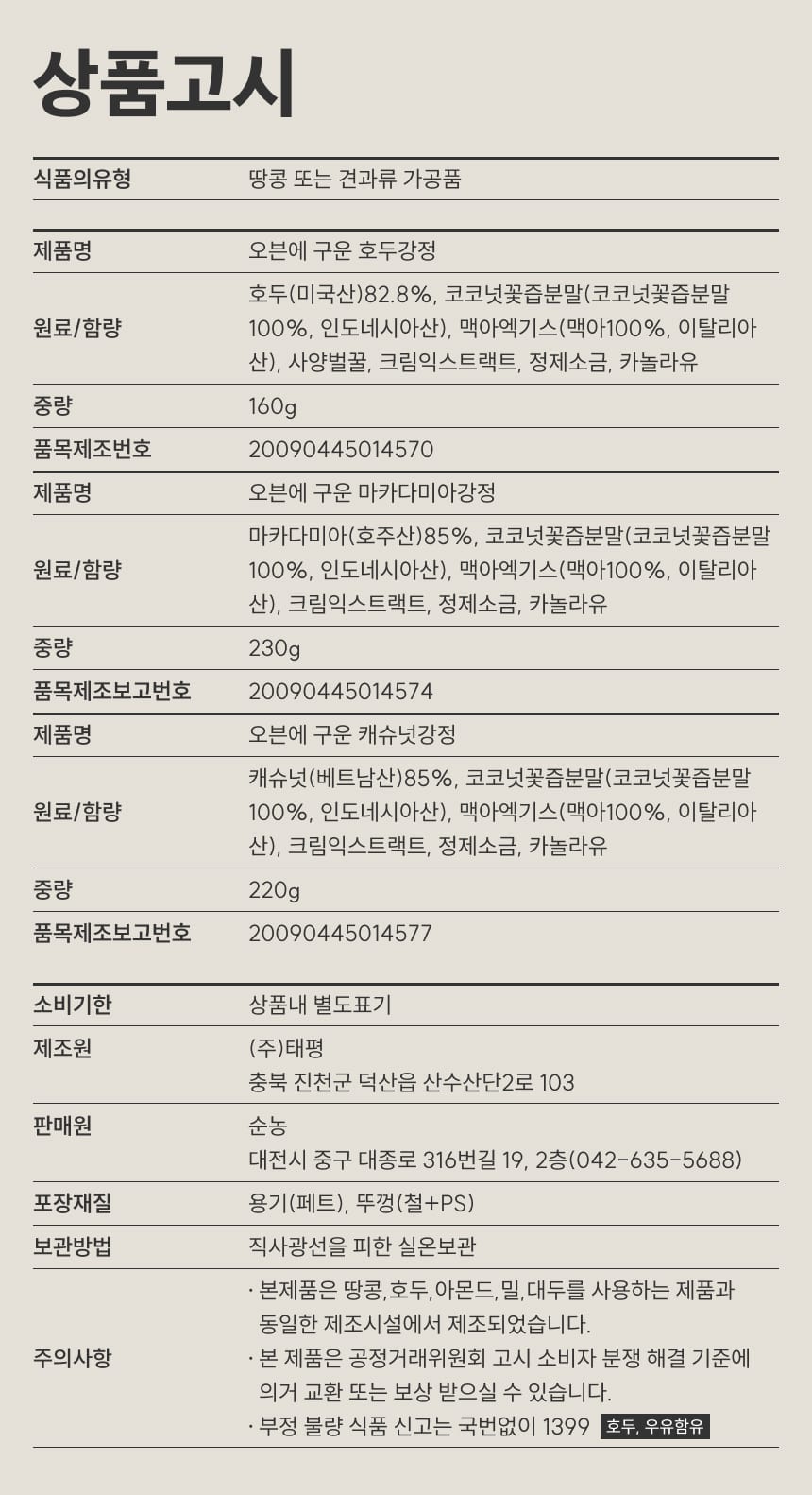 상품명 | 견과강정 3종 |