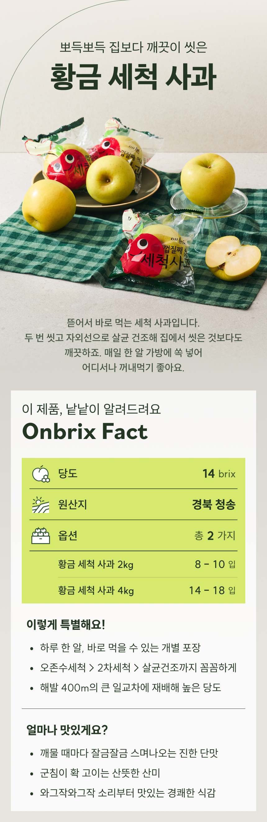 [새벽에On] 껍질째 먹는 황금 세척 사과 2kg / 3.5kg