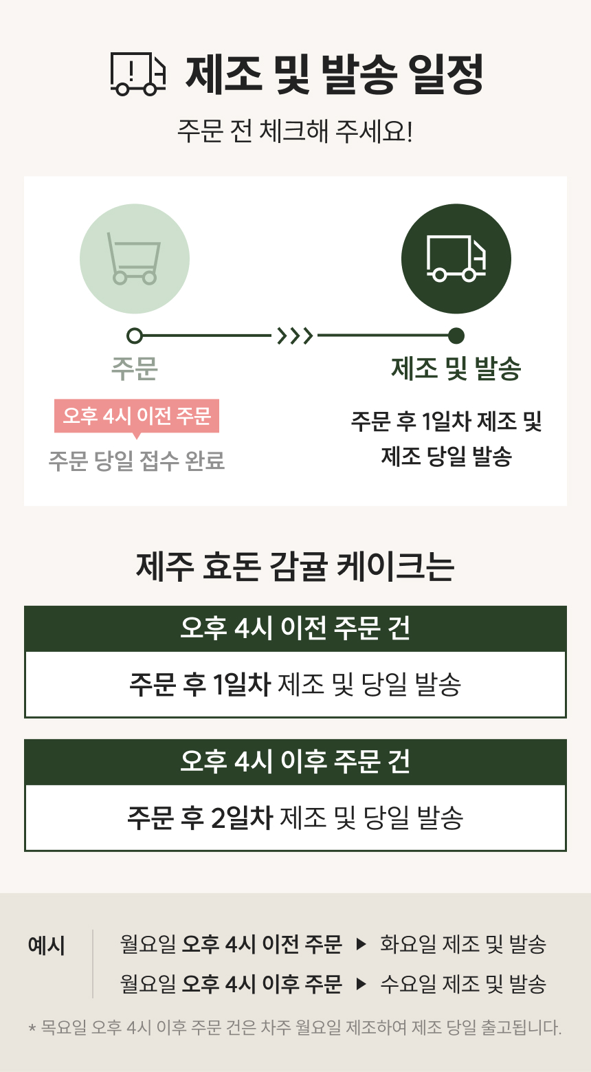 품질 기준 미달 시 배송이 지연될 수 있습니다. 해당 사항은 사전에 개별 안내 드립니다.