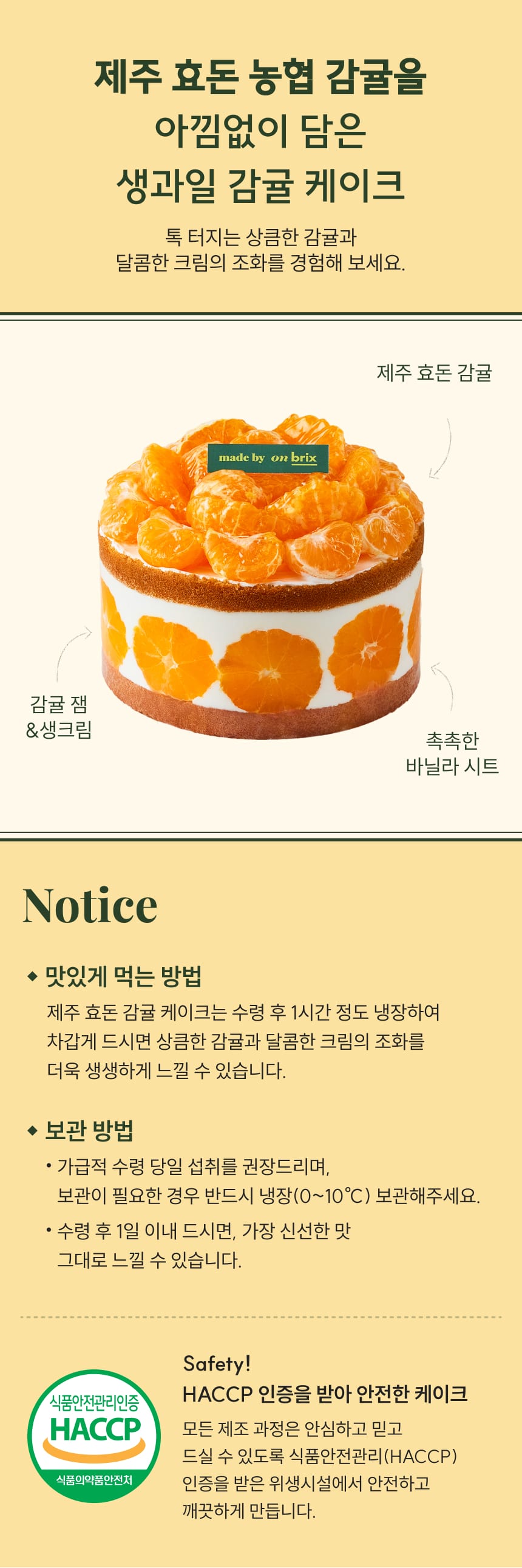 프리미엄 효돈 감귤로 만든, 감귤 생크림 케이크