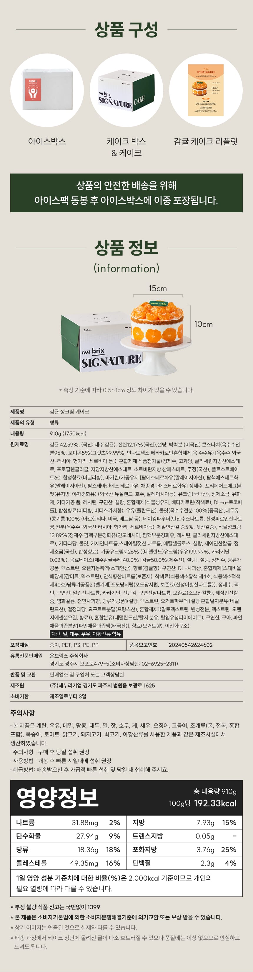 상품명 | 온브릭스 감귤케이크 |