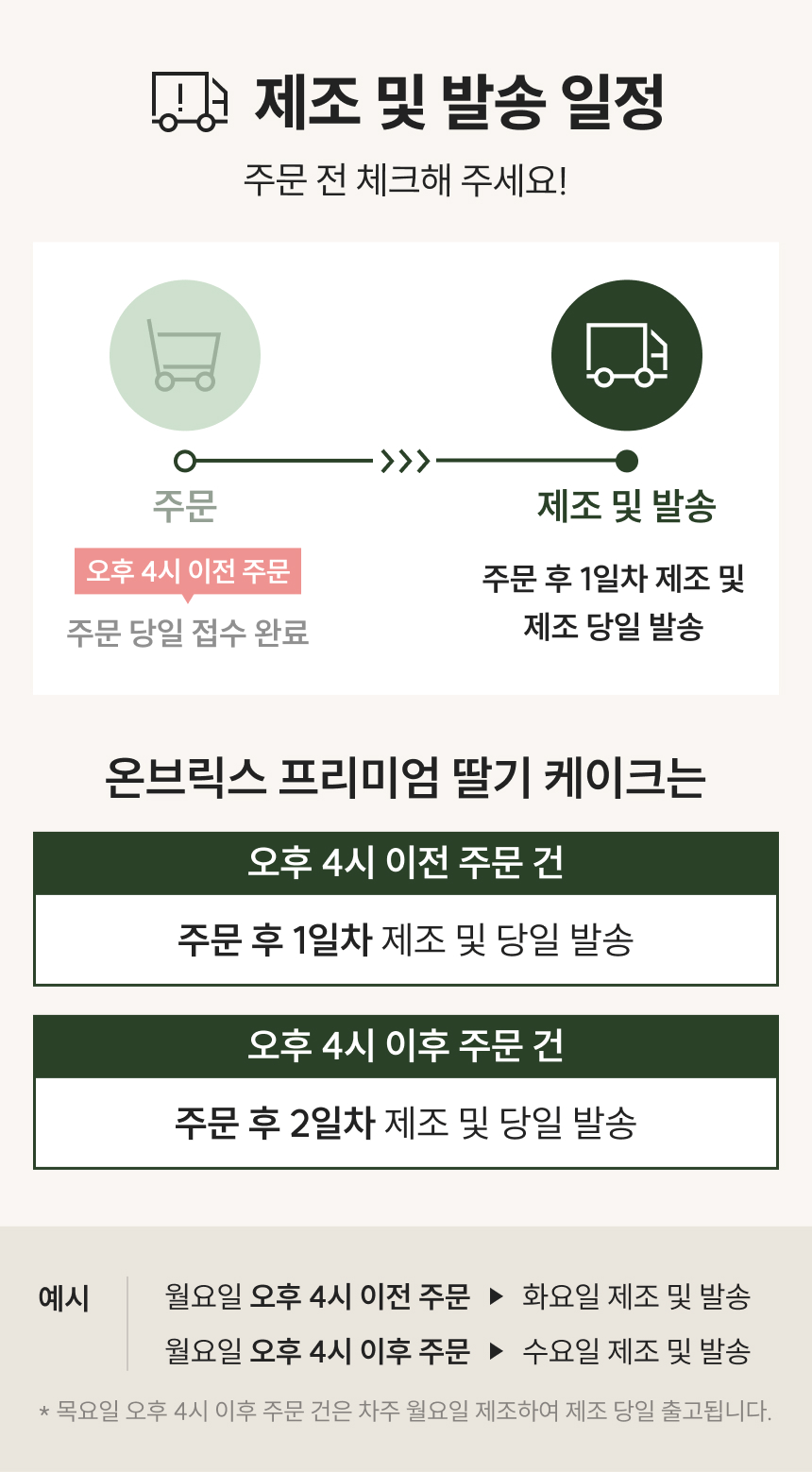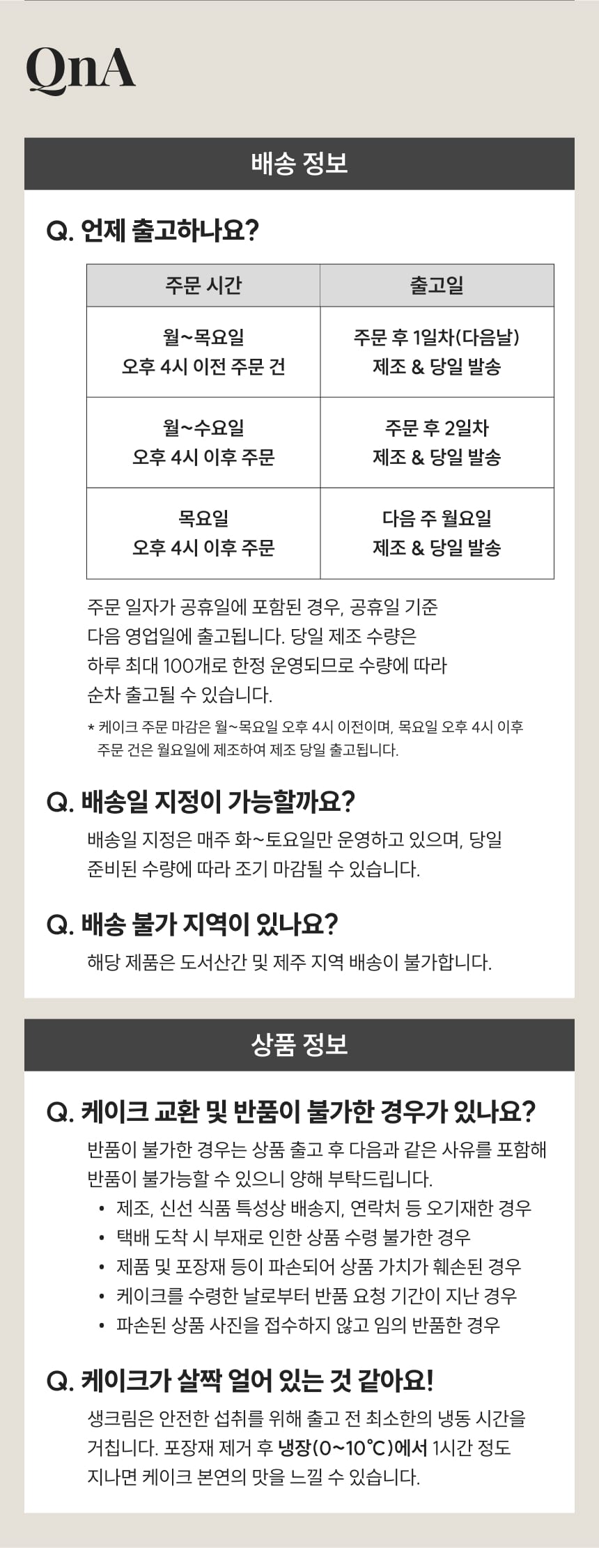 품질 기준 미달 시 배송이 지연될 수 있습니다. 해당 사항은 사전에 개별 안내 드립니다.