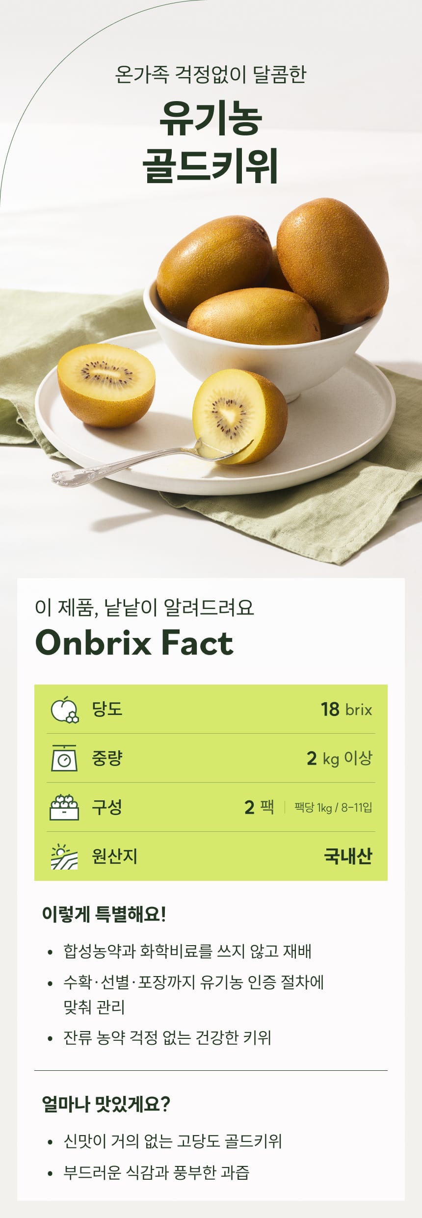 [새벽에On] 오직 천연 퇴비만 사용한, 유기농 국내산 골드키위 2kg