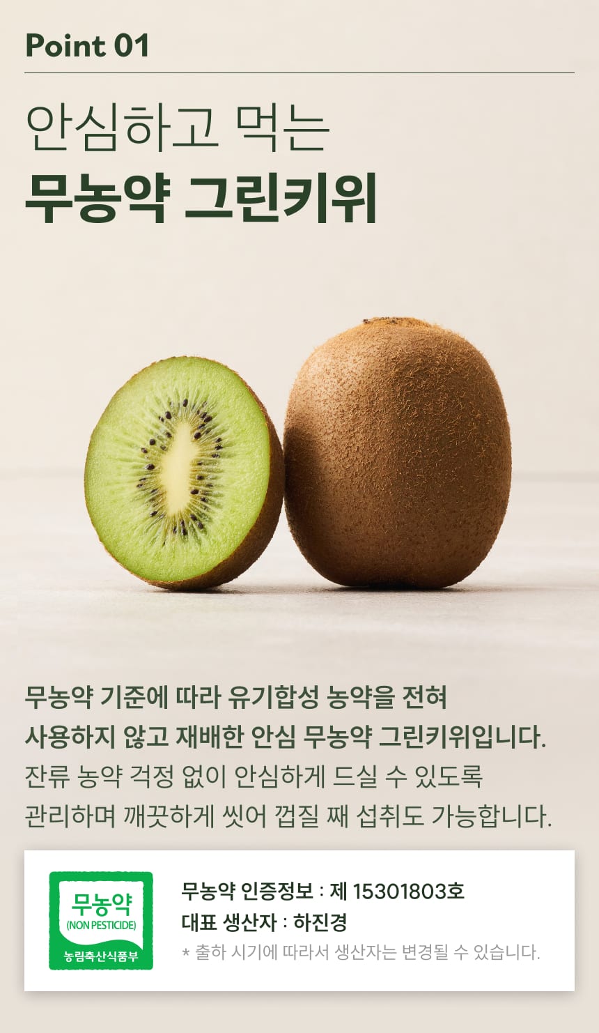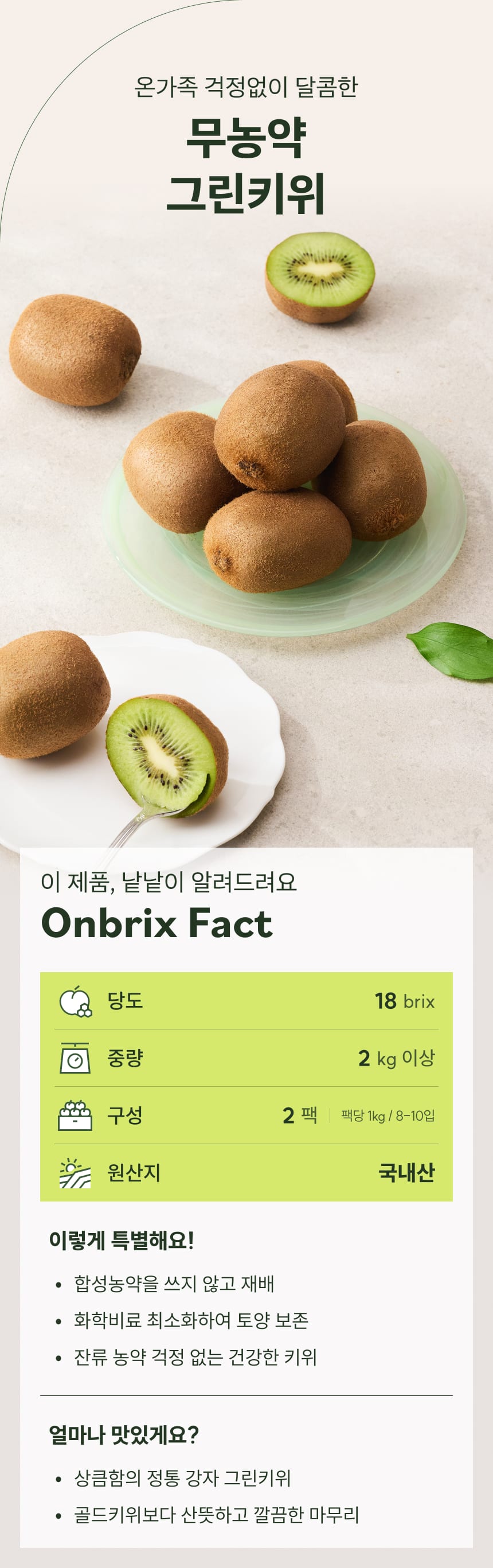 [새벽에On] 온가족 걱정없이 달콤한, 무농약 국내산 그린키위 2kg