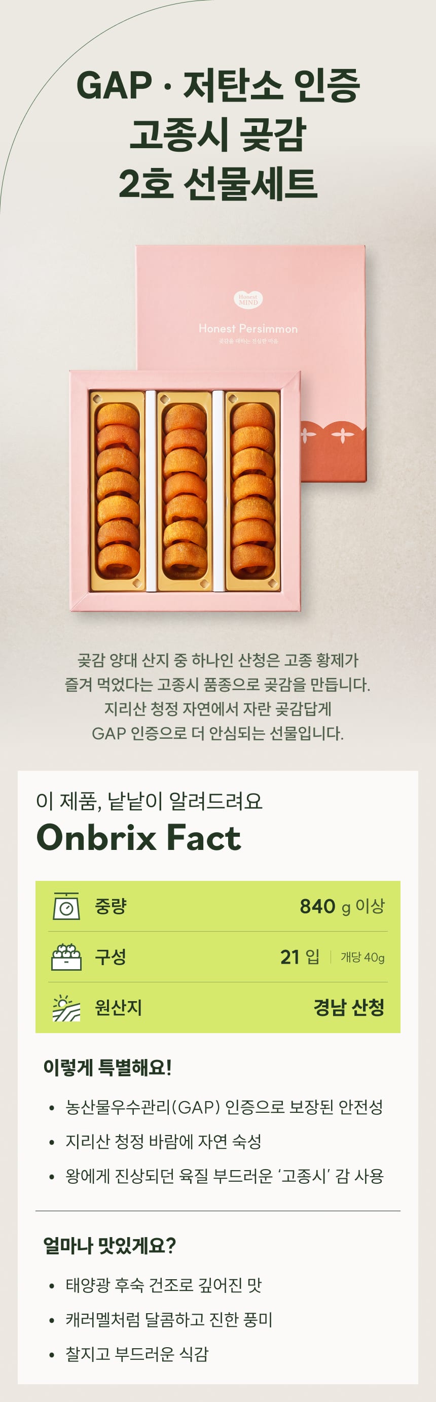 저탄소 인증, 산청 고종시 곶감 2호 선물세트 21입(개당 40g이상/특품)