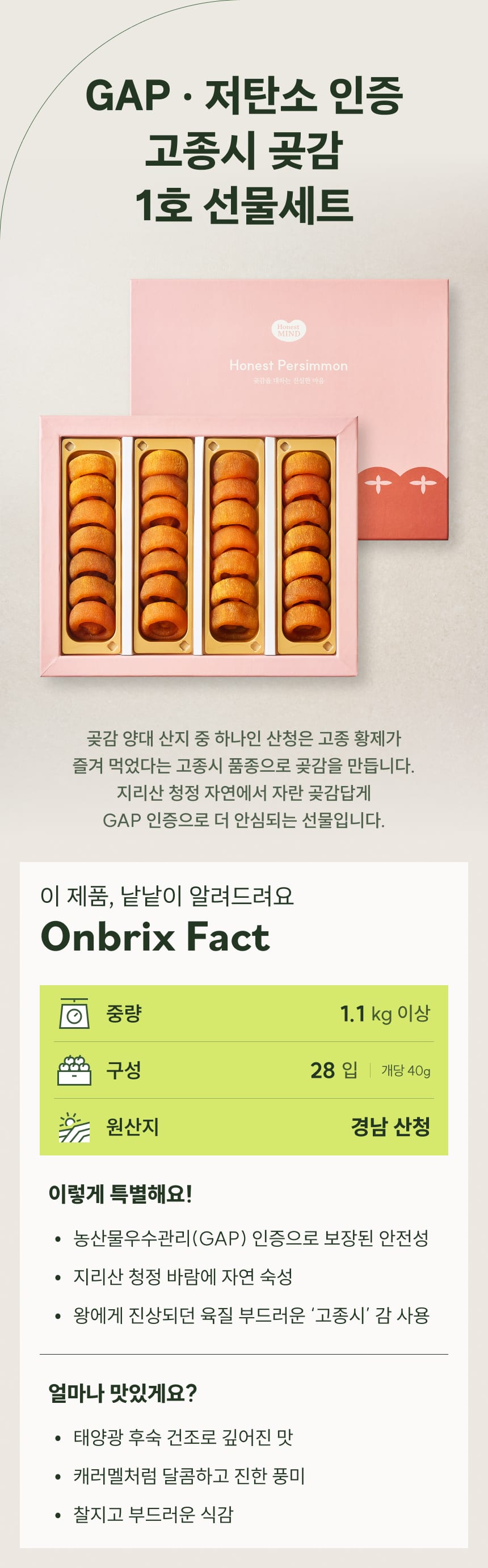 저탄소 인증, 산청 고종시 곶감 1호 선물세트 28입(개당 40g이상/특품)