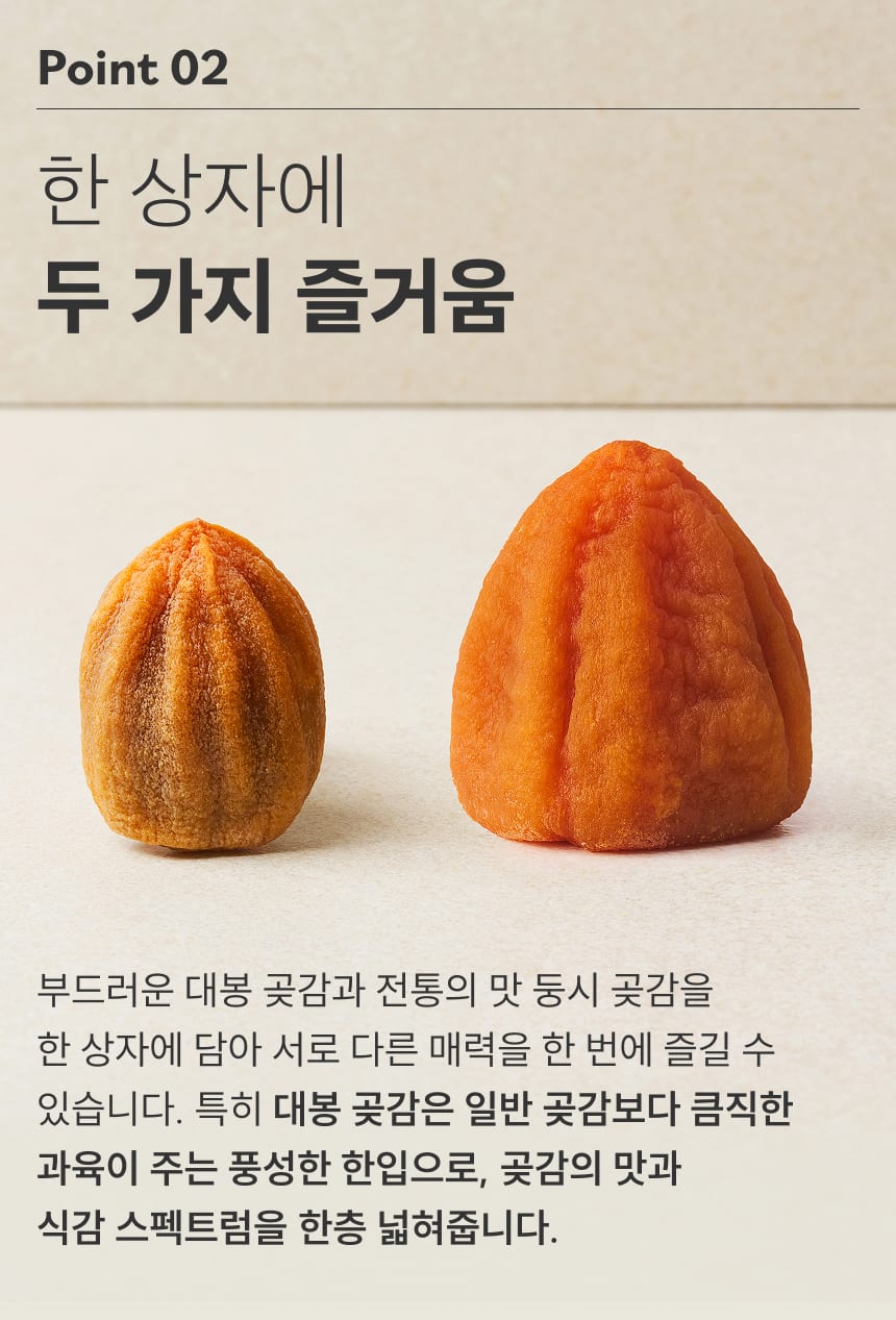 서로 다른 매력, 대봉&둥시 곶감 2종 혼합세트 25입(총 1.6kg)