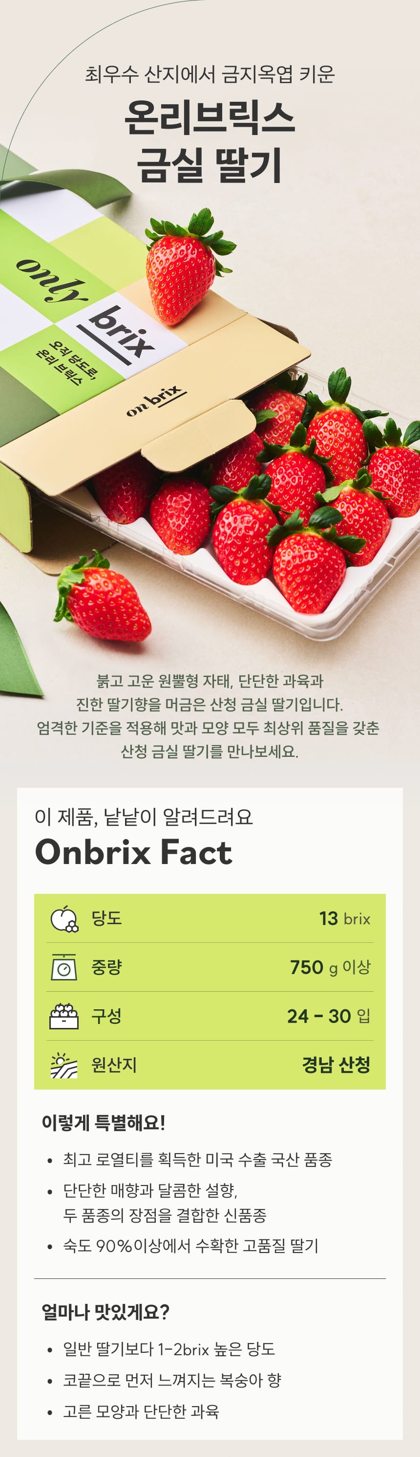 134 [설 선물] 국내 최고 등급, 온리브릭스 산청 금실 딸기 750g(24-30입/특품)