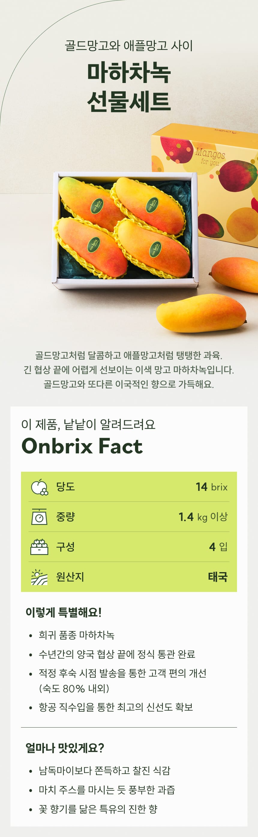 항공직송 마하차녹 무지개망고 선물세트 1.4kg이상 (4입)