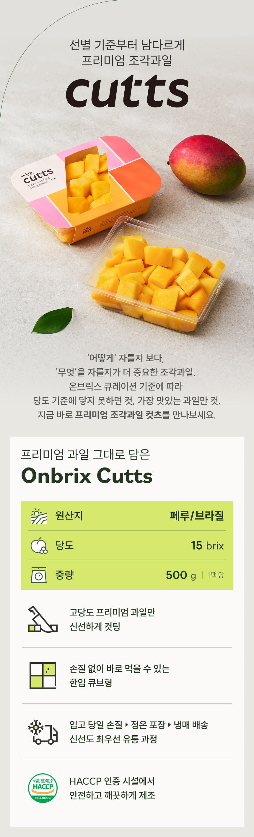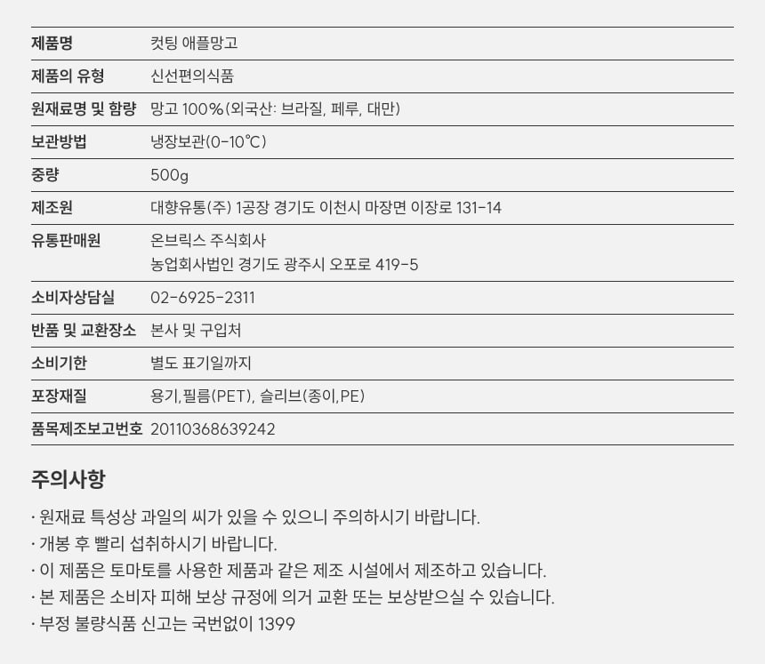 [새벽에On] 애플망고 4개를 잘라담은, 대용량 컷팅 애플망고 500g