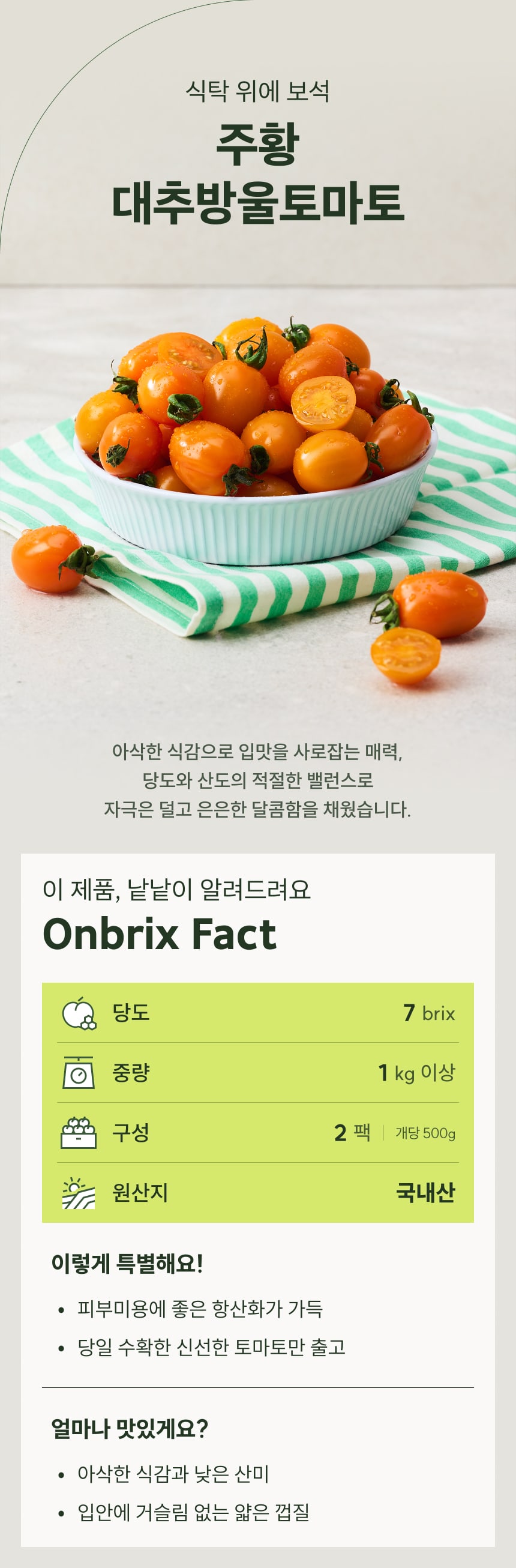 [새벽에On] 부드러운 식감이 매력적인, 주황 대추방울토마토 1kg (500g*2팩)