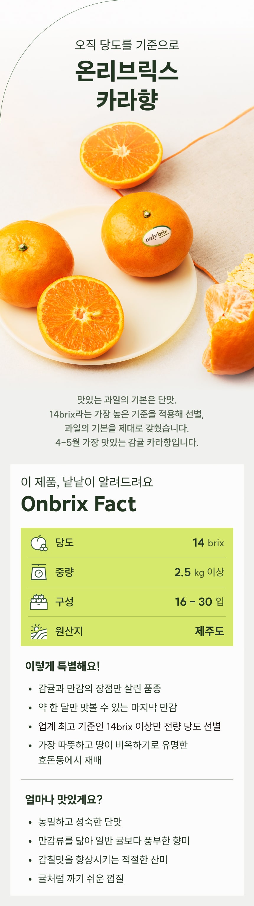 적절한 산미와 응축된 단맛, 온리브릭스 카라향 2.5kg (16-30입)