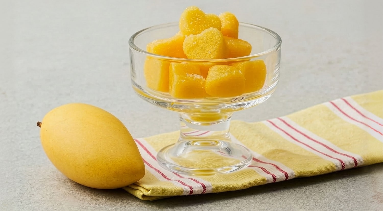 일반 젤리의 인위적인 쫄깃함 대신 생망고로 즐기는 얼먹젤리! 얼리면 더 쫀득해지고, 아이스크림처럼 시원하게 즐겨보세요. 준비물은 오직 온브릭스 망고 한 알이면 충분합니다.